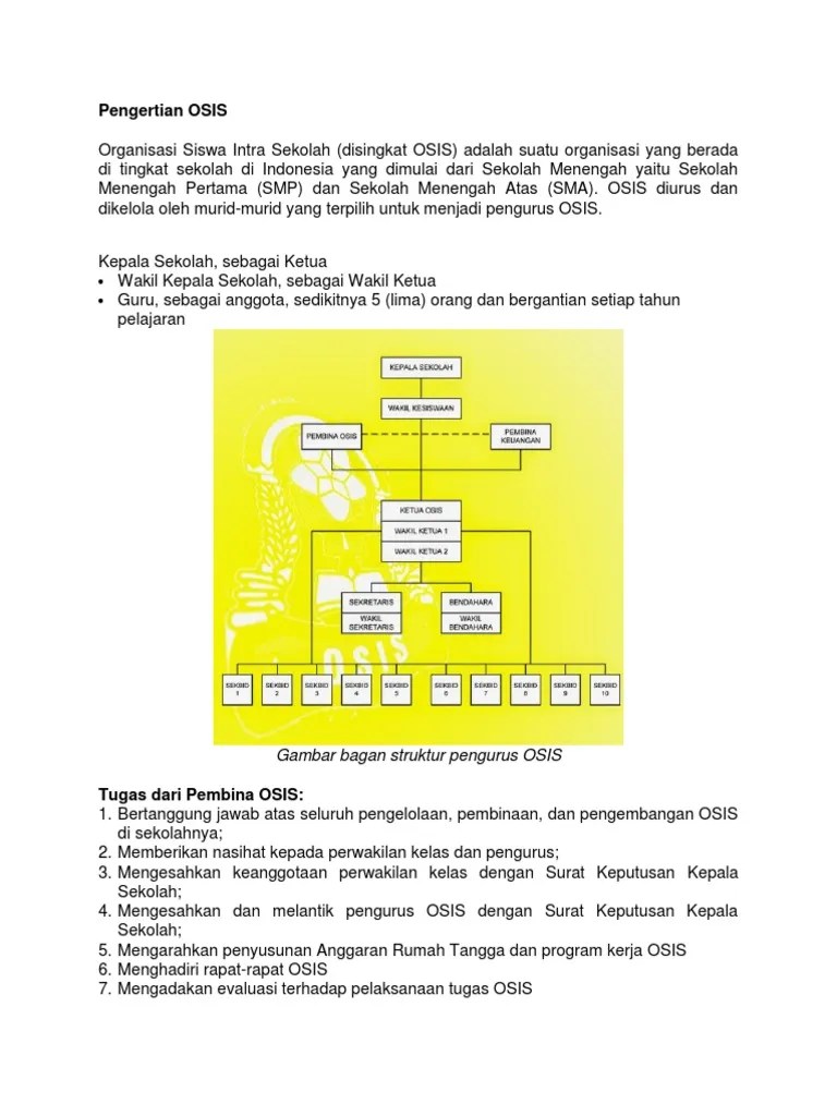 Salam untuk rekan rekan guru se nusantara. Seluruh anggota osis berhak untuk memilih calonnya untuk kemudian menjadi pengurus osis. 1, 2, 3, 4, 5, 6. Mempertanggung jawabkan segala tugas kepada kepala sekolah selaku ketua pembina. Berikut adalah struktur kepengurusan osis smp negeri 1 limboto masa .